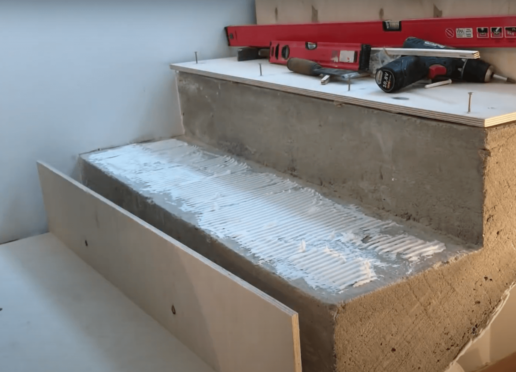 Укладываем фанеру на ступени и подступенники, толщиной 18-20мм, для придания идеально гладкой поверхности.